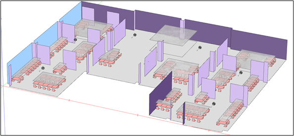 Il caso studio che proponiamo riguarda una sala mensa di 250 posti a sedere in un volume di circa 2140 m3